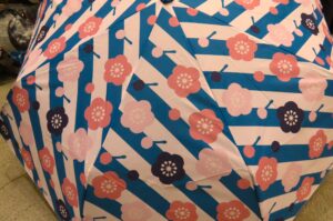 インスタ映えさんコメントありがとうございます。ツバキの柄いいですね。こんな傘持ってたら雨の日が楽しくなりそうですね。